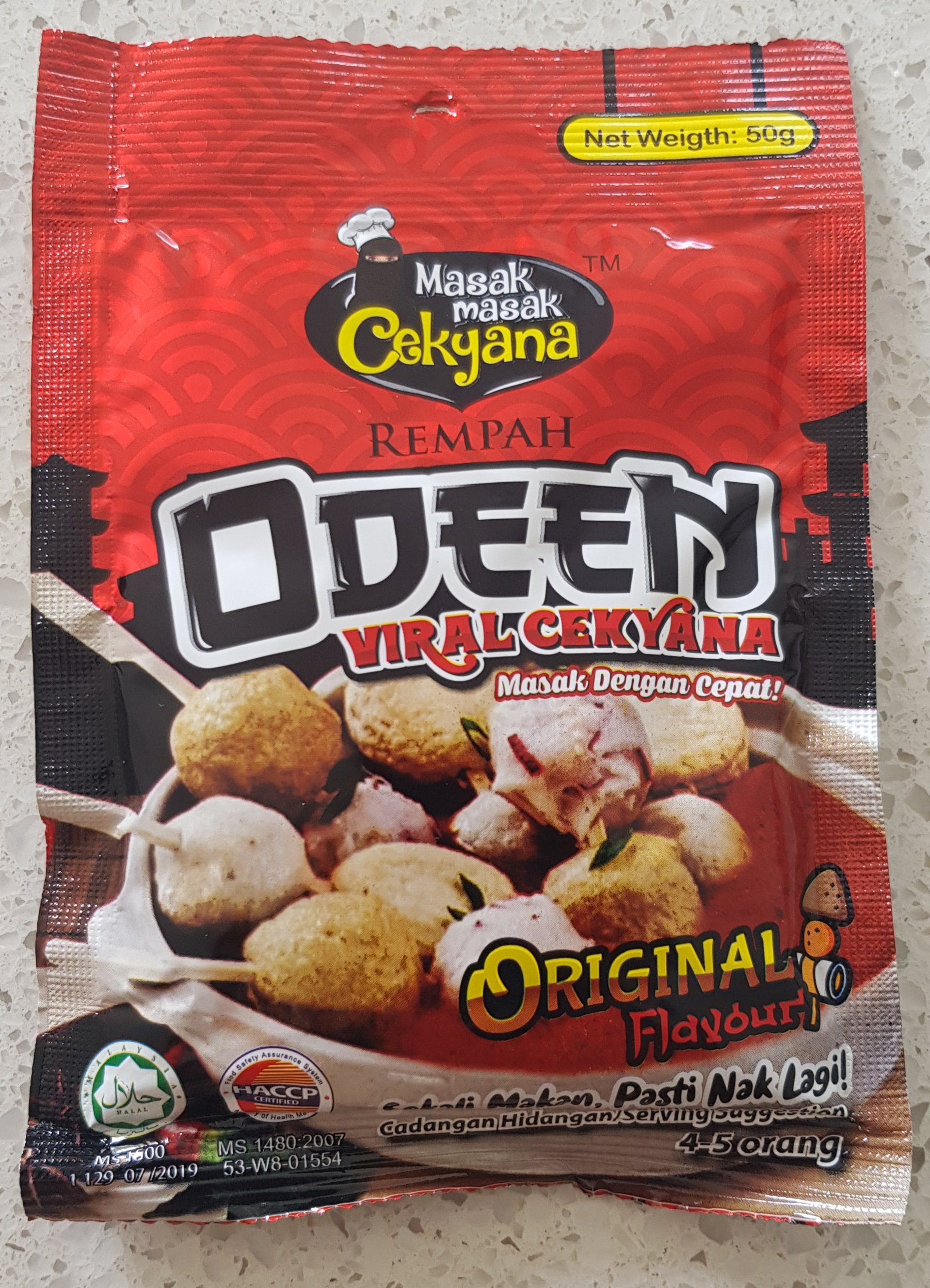 Garam, cili api, serai, daun ketumbar, minyak sayuran (kelapa sawit), tepung gandum, sos ikan, mengandungi yis estrak, pengawal asid (asid sitrik) sebangai kondisioner makanan yang dibenarkan, gula dan serbuk bawang.