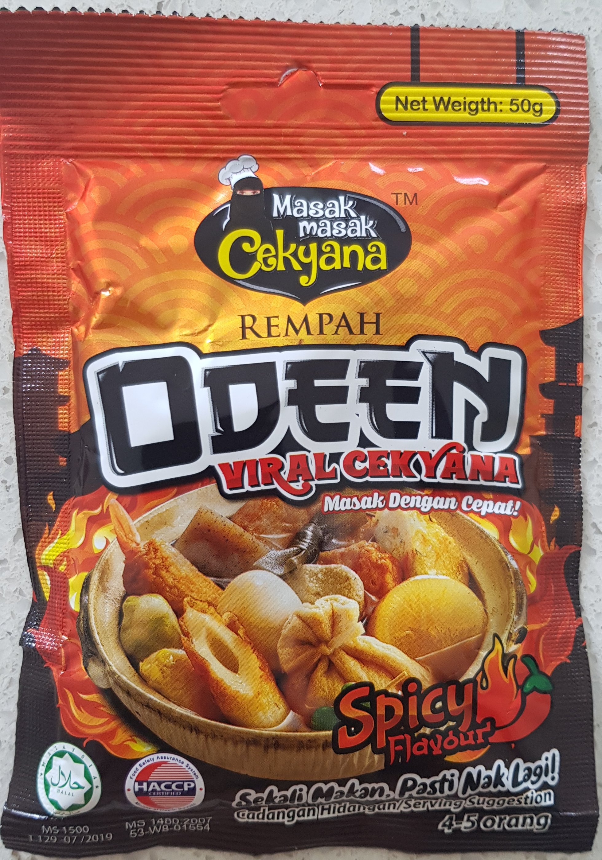 Garam, cili api, serai, daun ketumbar, minyak sayuran (kelapa sawit), tepung gandum, sos ikan, mengandungi yis estrak, pengawal asid (asid sitrik) sebangai kondisioner makanan yang dibenarkan, gula dan serbuk bawang.